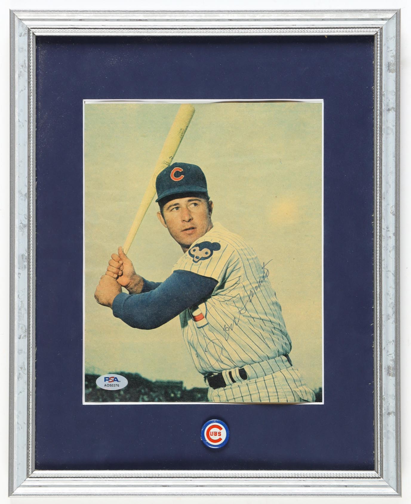 Custom frame measures approximately 12" x 15" in size and features a photo that has been hand-signed by Ron Santo (D. 2010, Chicago Cubs, HOF).