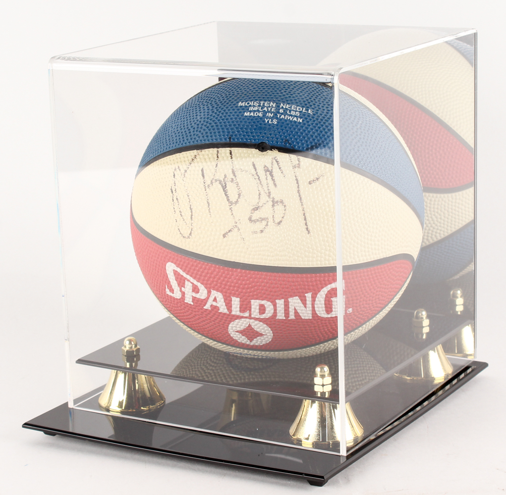 Spalding mini basketball has been hand-signed in black felt-tip pen by Michael Jordan and David Robinson. The auction also comes with a high-quality display case.