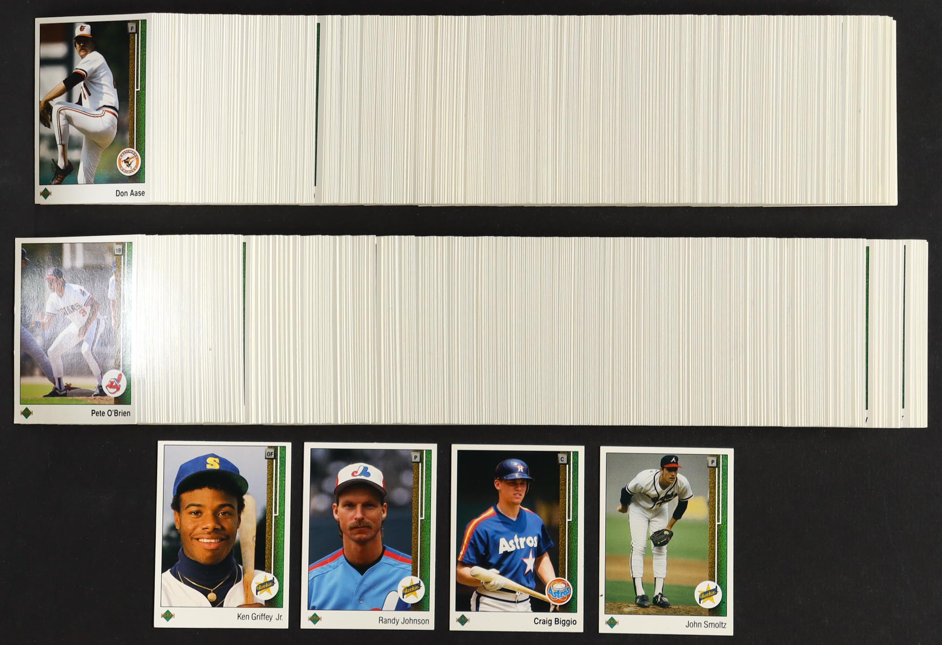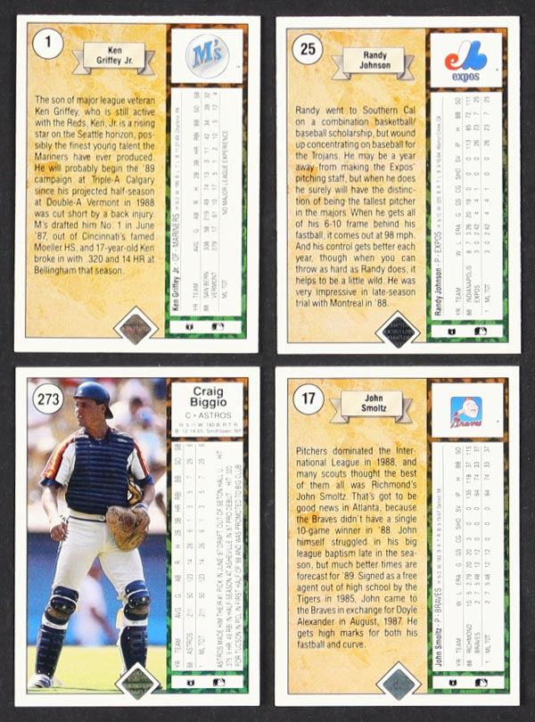 1989 Upper Deck Baseball Card Complete Set with (800) Cards with Craig Biggio #273, Randy Johnson #25 RC, John Smoltz #17 RC, Ken Griffey Jr . #1 RC