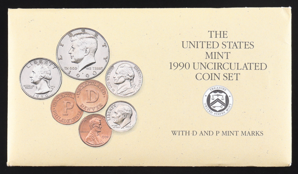 1990 Uncirculated Denver & Philadelphia Mint Souvenir (10) Coin Set with Mint Tokens. Please see photos for details regarding the condition of the coin.