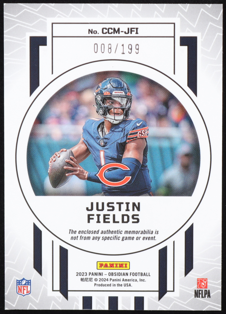 Justin Fields 2023 Panini Obsidian Cutting Edge Memorabilia #10 #008/199