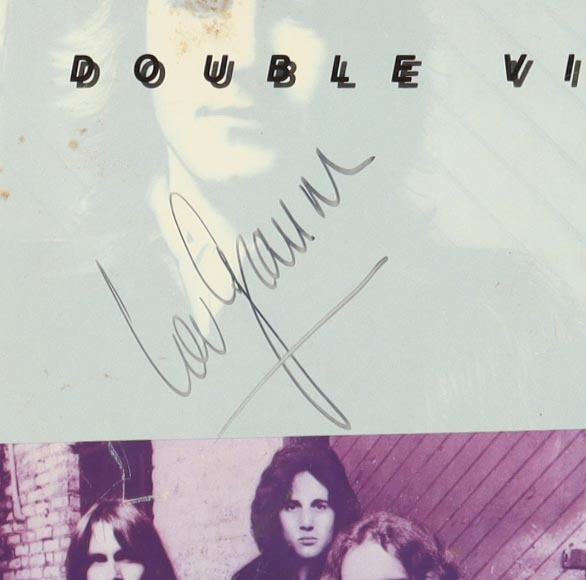Custom frame measures approximately 23" x 30" in size and features a Foreigner "Double Vision" vinyl album cover that has been hand-signed by Mick Jones & Lou Gramm.