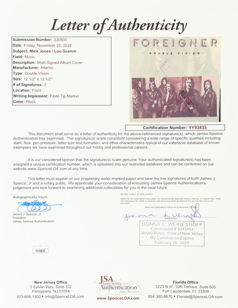 Mick Jones & Lou Gramm Signed Foreigner "Double Vision" Custom Framed Vinyl Album Cover (JSA)