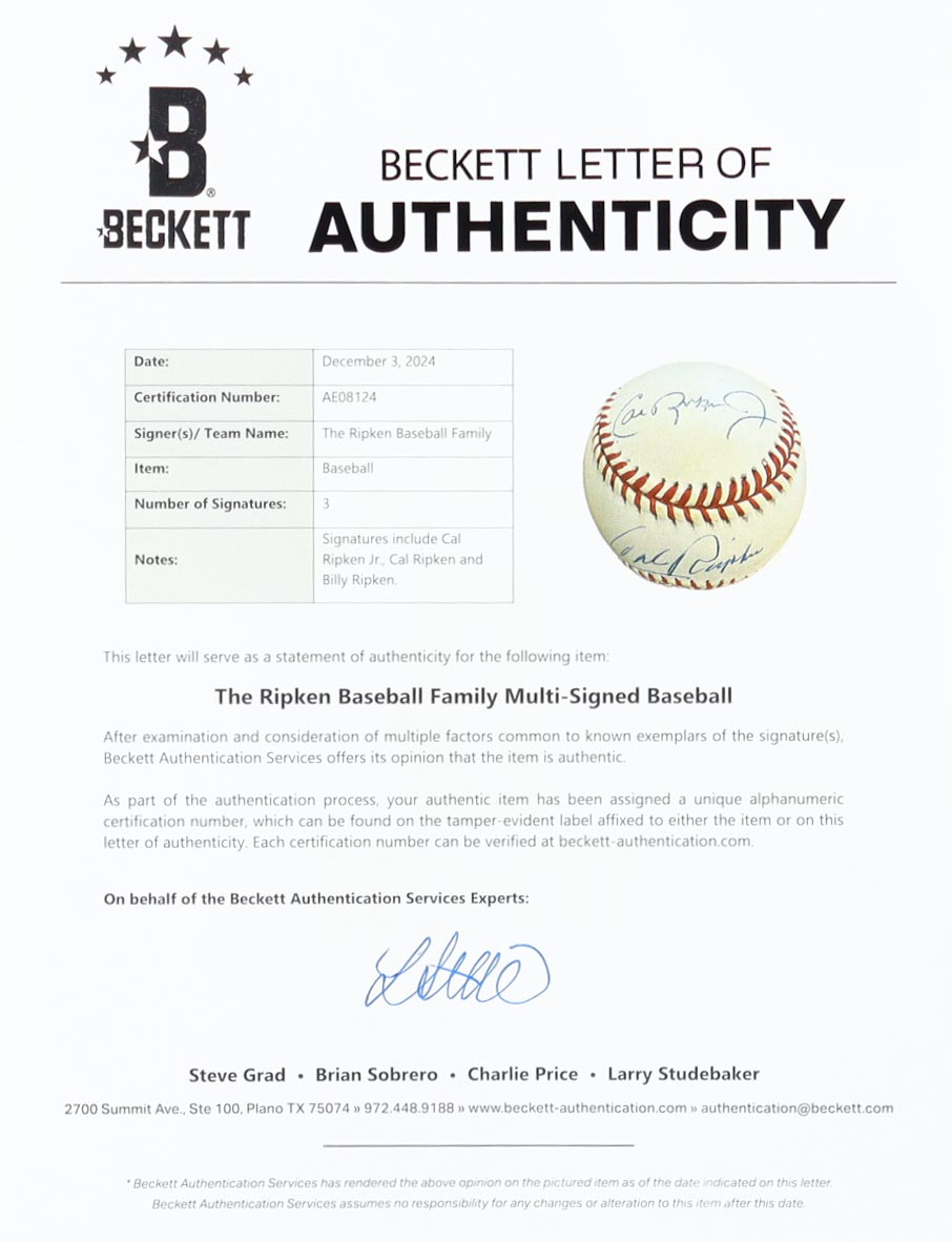 Cal Ripken Jr., Cal Ripken & Billy Ripken Signed OAL Baseball (Beckett)