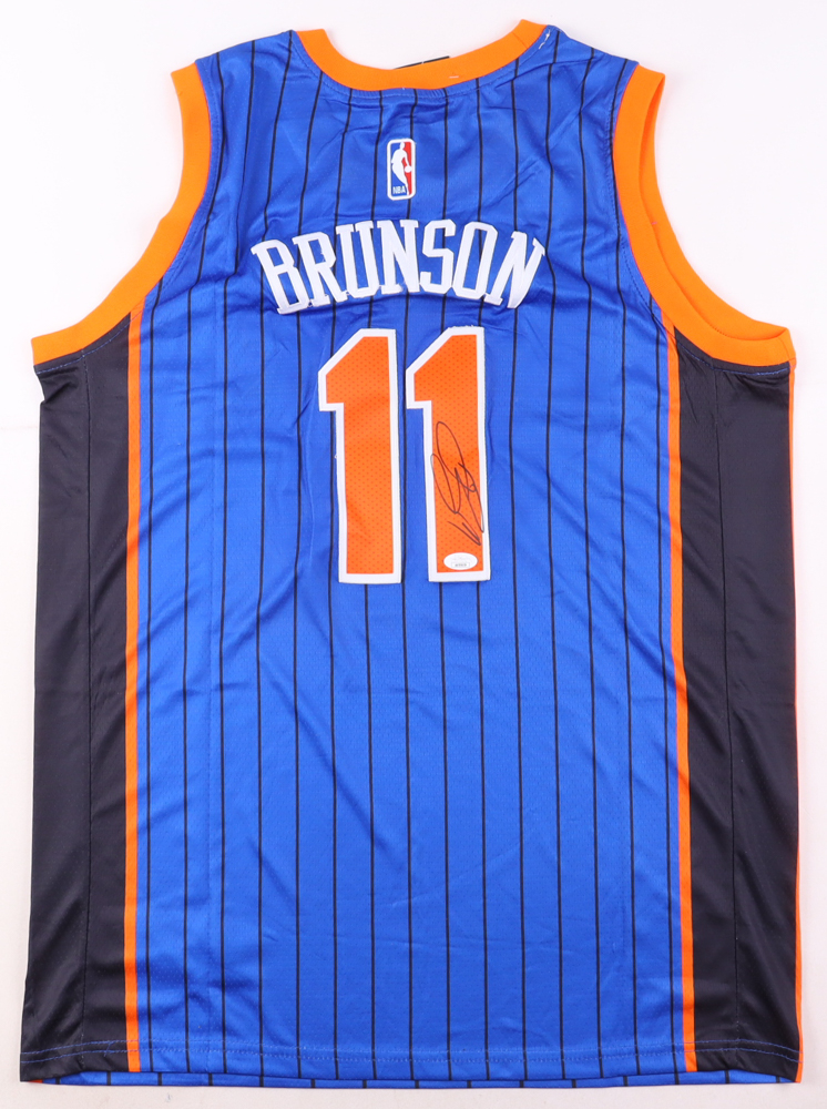 Custom jersey with everything sewn on, size 52. Hand-signed by Jalen Brunson (New York Knicks).