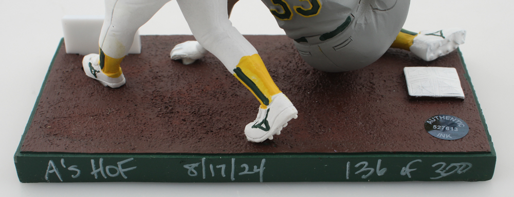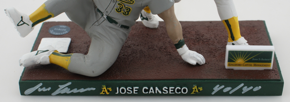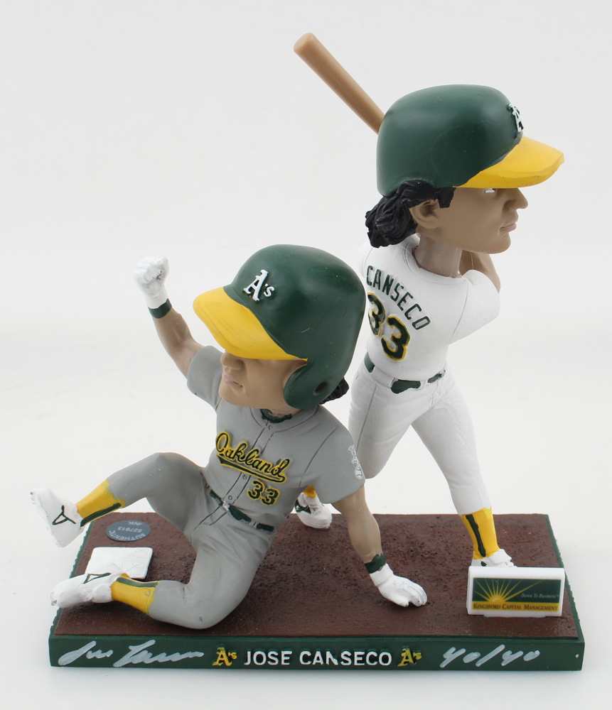 Oakland Athletics bobblehead figure measures approximately 8" in size. Hand-signed and inscribed by Jose Canseco (Oakland Athletics). Item was signed on 8/17/24 and is limited edition #136/300. Refer to photos for more details.