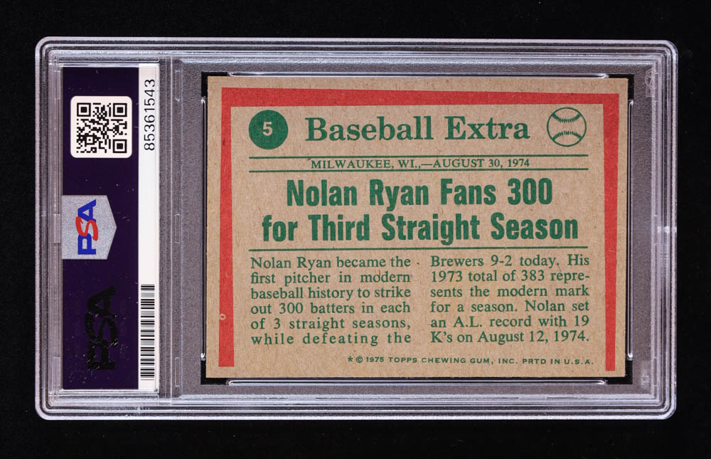 Nolan Ryan Signed 1975 Topps #5 (PSA | Autograph Graded PSA 10)
