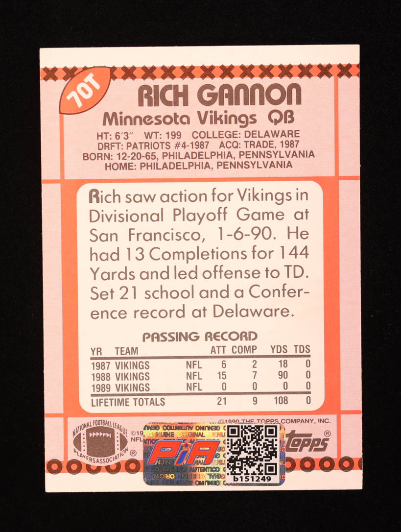 Rich Gannon Signed 1990 Topps Traded #70T RC (PIA)
