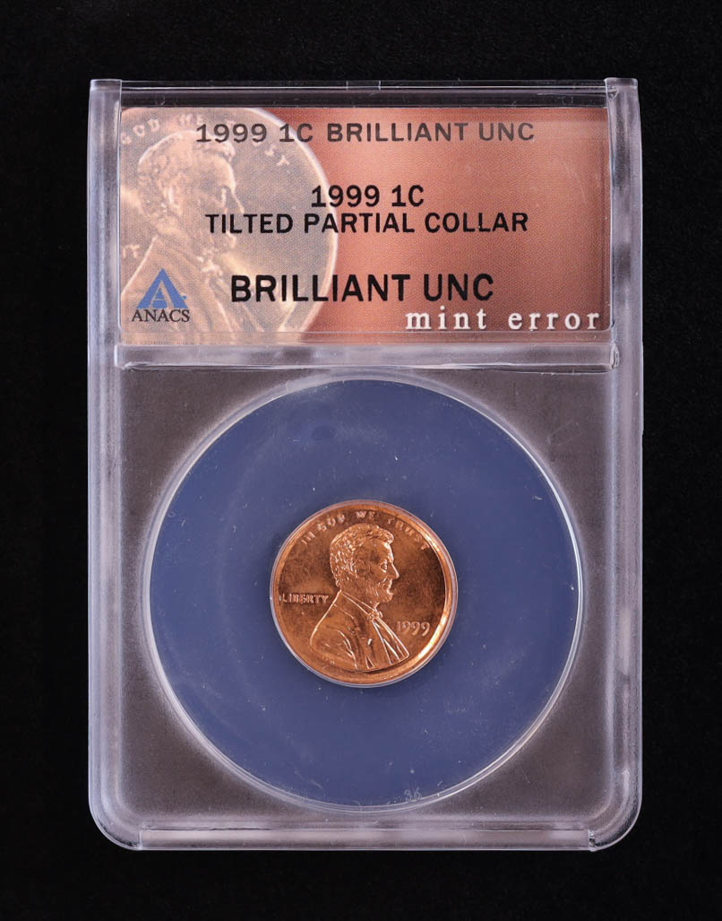1999 Lincoln Cent - Mint Error, Tilted Partial Collar (ANACS BRILLIANT UNCIRCULATED)