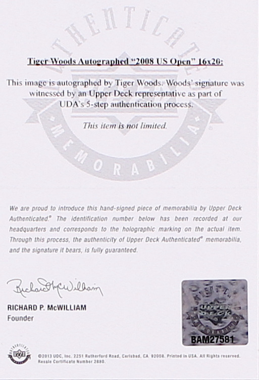 Tiger Woods Signed "2008 US Open" 16x20 Photo (UDA COA)