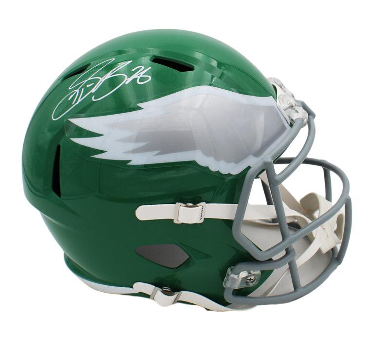 Riddell Philadelphia Eagles full-size alternate speed replica helmet has been hand-signed by Saquon Barkley.