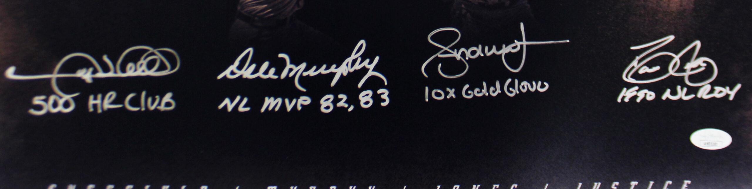 Photo measures 16" x 20" in size and has been hand-signed and inscribed by (4) with Gary Sheffield, Dale Murphy, Andruw Jones, and Dave Justice.