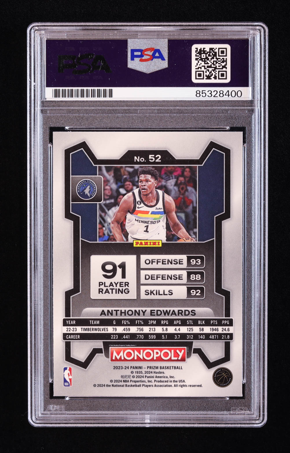 Anthony Edwards Signed 2023-24 Panini Prizm Monopoly #52 (PSA)