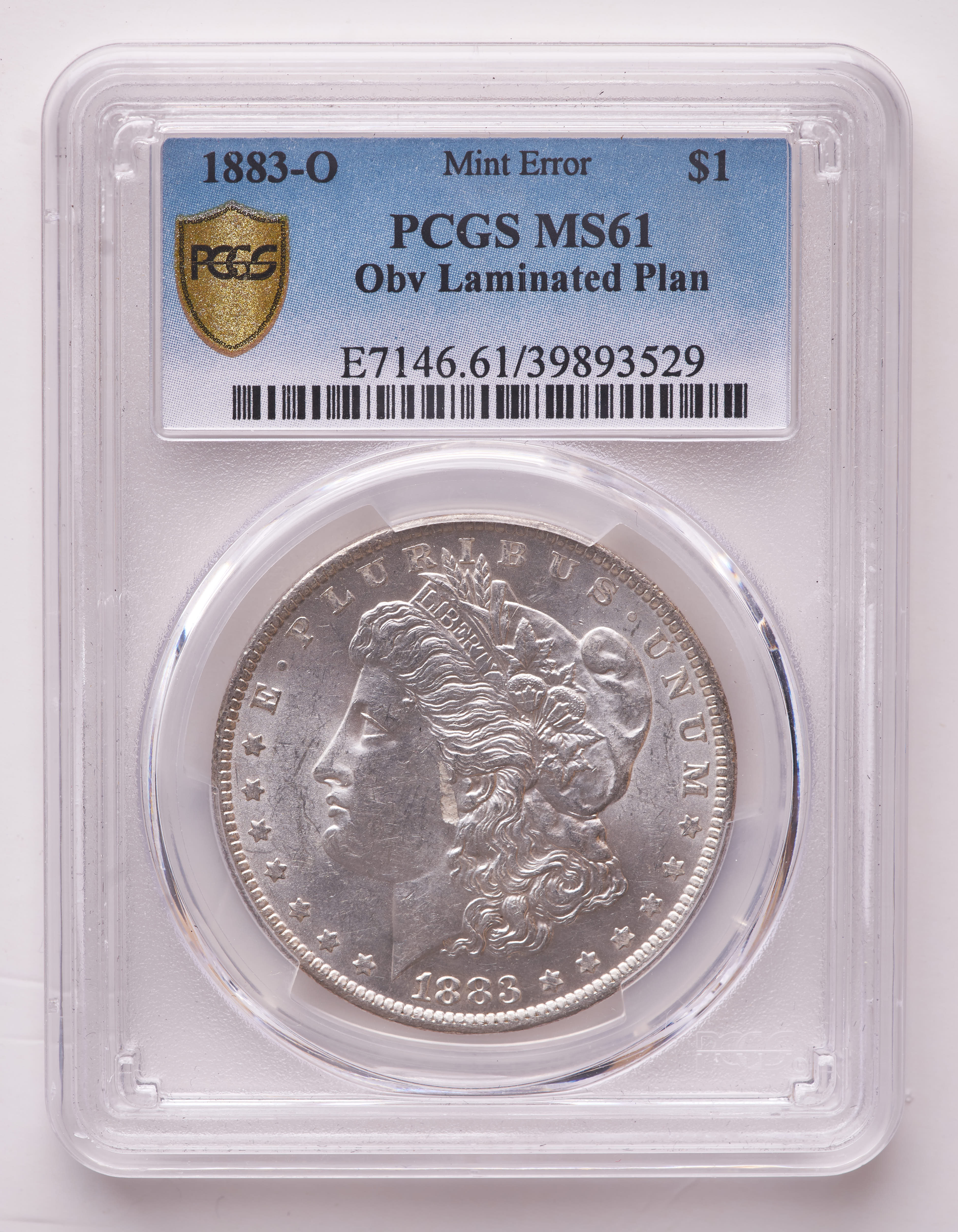 Mint Error 1883-O Morgan Silver Dollar Obverse Laminated Planchet (PCGS MS61)