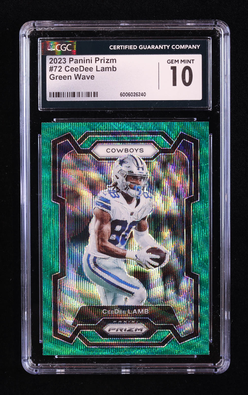 CeeDee Lamb 2023 Panini Prizm Prizms Green Wave #72 (CGC 10)