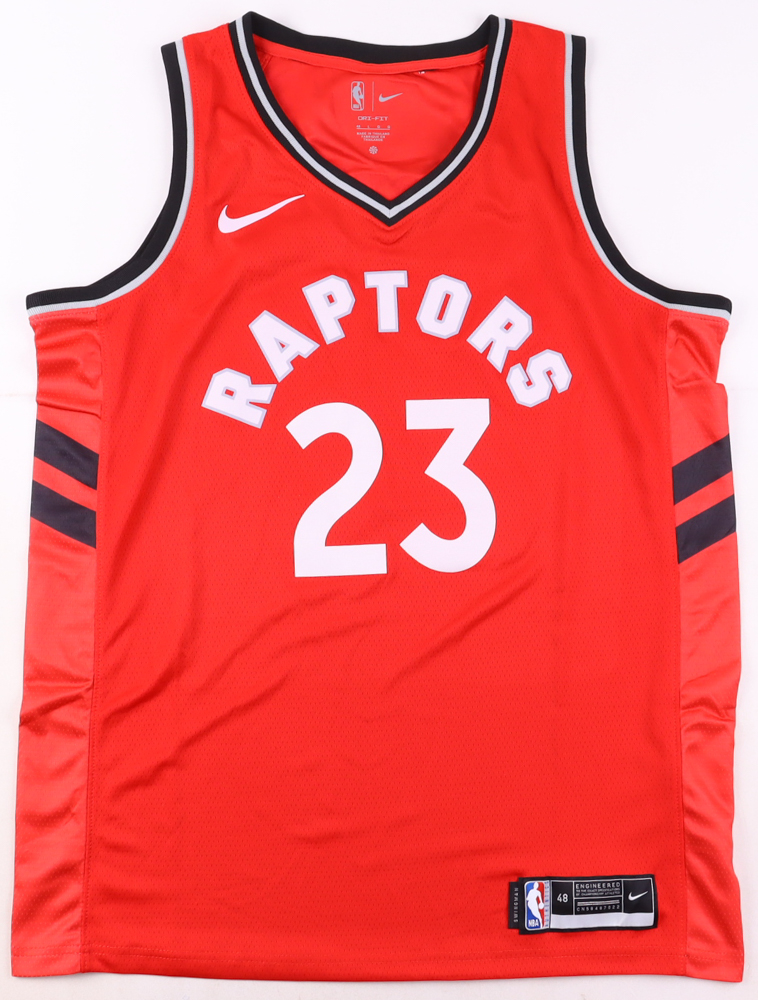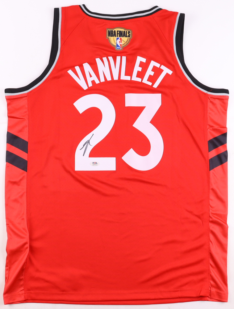 Nike style jersey with everything pressed on, size L. Hand-signed by Fred VanVleet (Toronto Raptors).