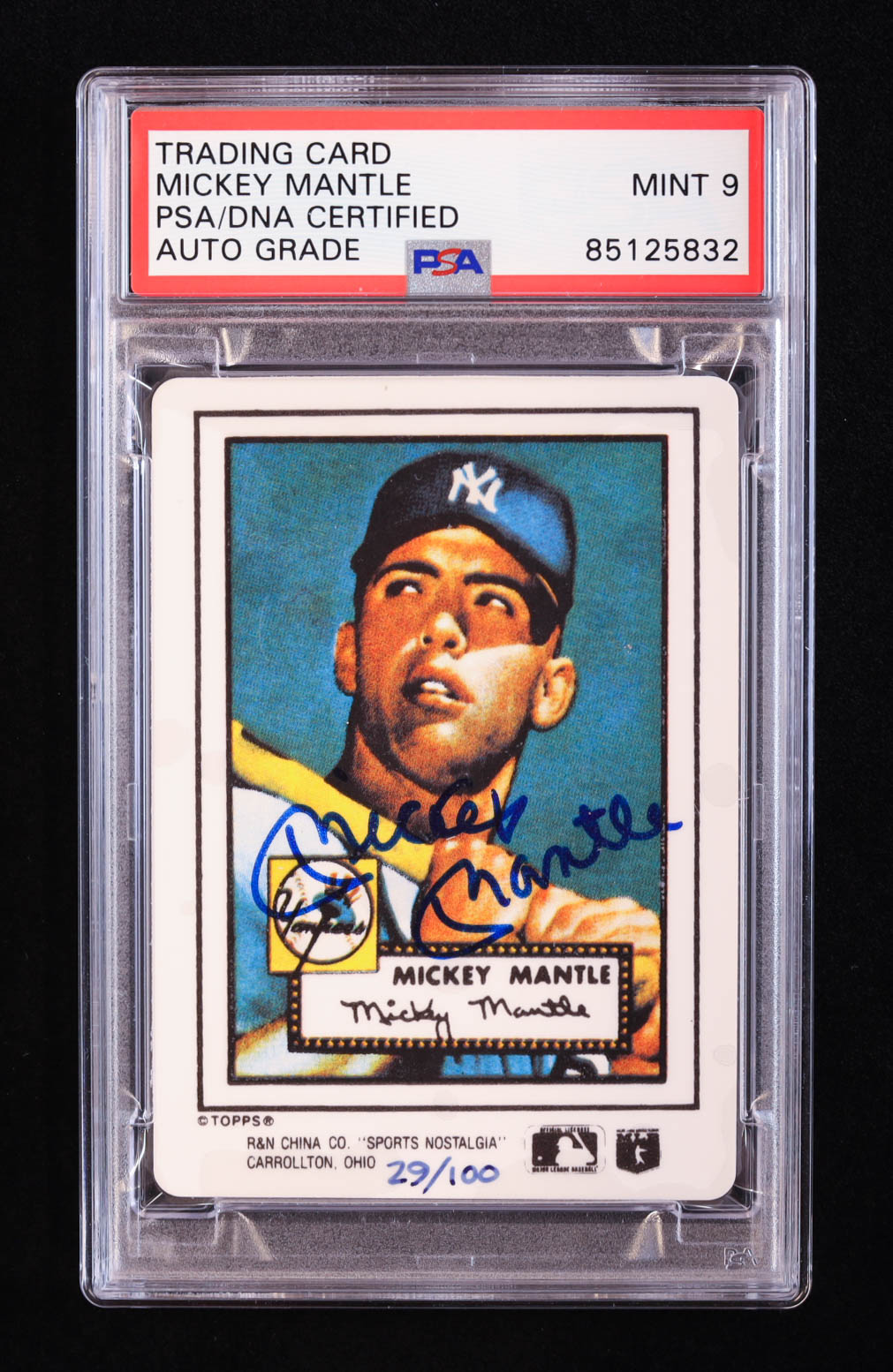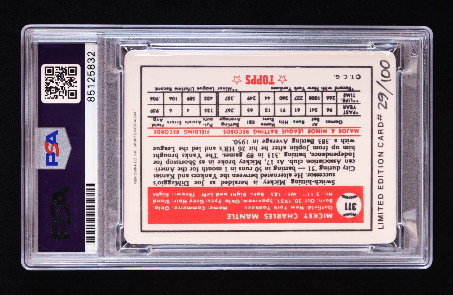 Mickey Mantle Signed Topps Reprint Card #029/100 (PSA | Auto 9)