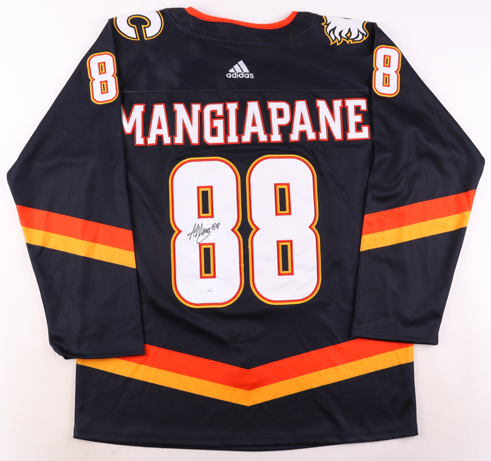 Adidas jersey. Everything is sewn on, size 52. Hand-signed by Andrew Mangiapane.
