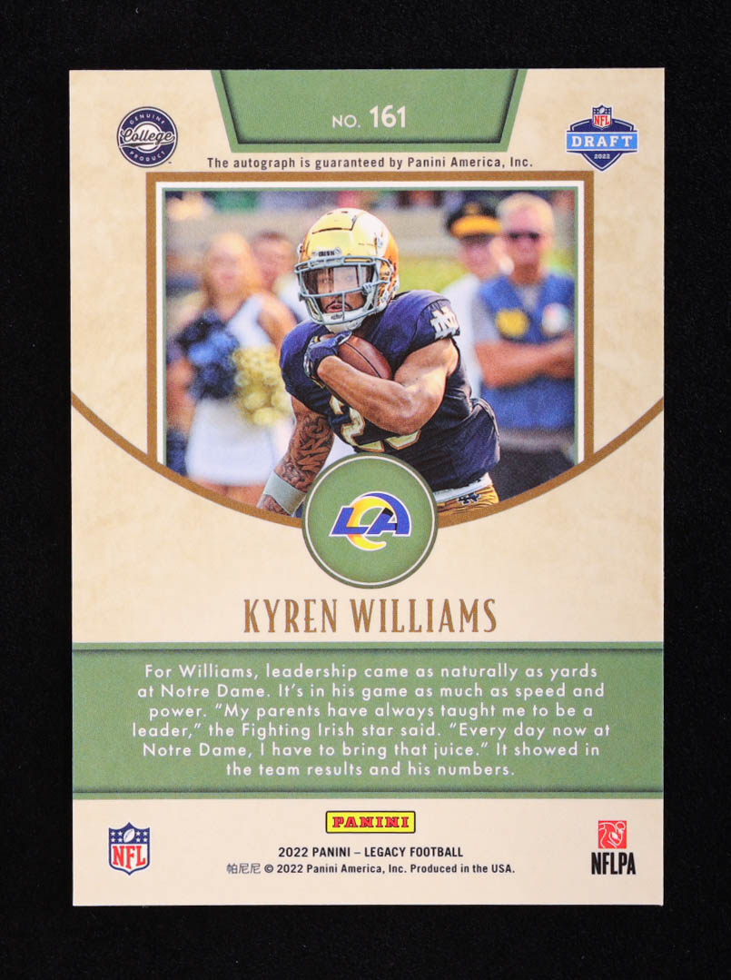 Kyren Williams 2022 Panini Legacy Rookies Premium Penmanship Silver #161 RC