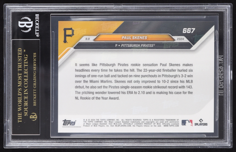 Paul Skenes 2024 Topps Now #667 RC (BGS Black Label 10)
