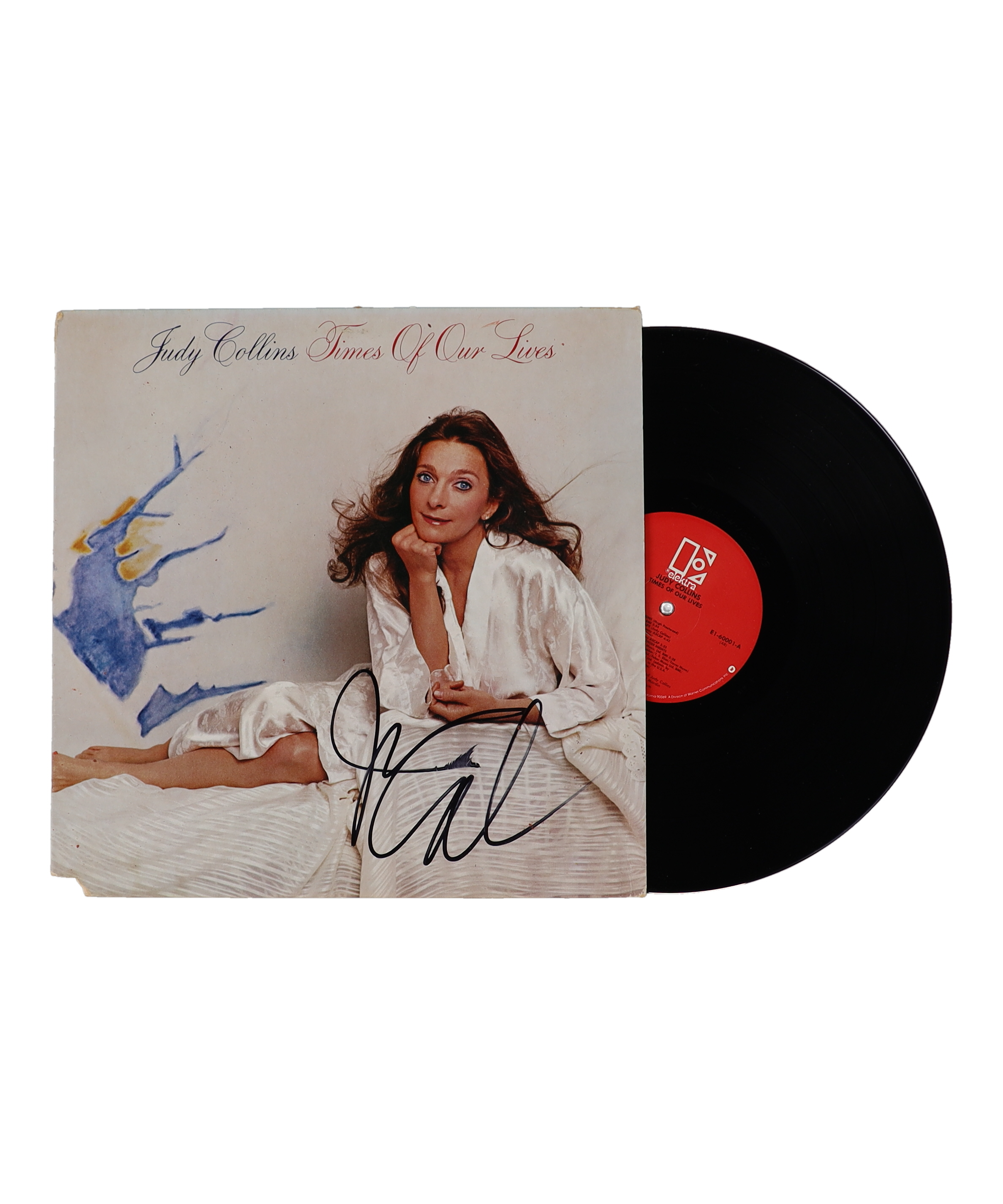 "Times of Our Lives" Vinyl Record Album has been hand-signed by Judy Collins. Please note, the vinyl record is included, the signature has been smudged, and there are tears and creases throughout the album.