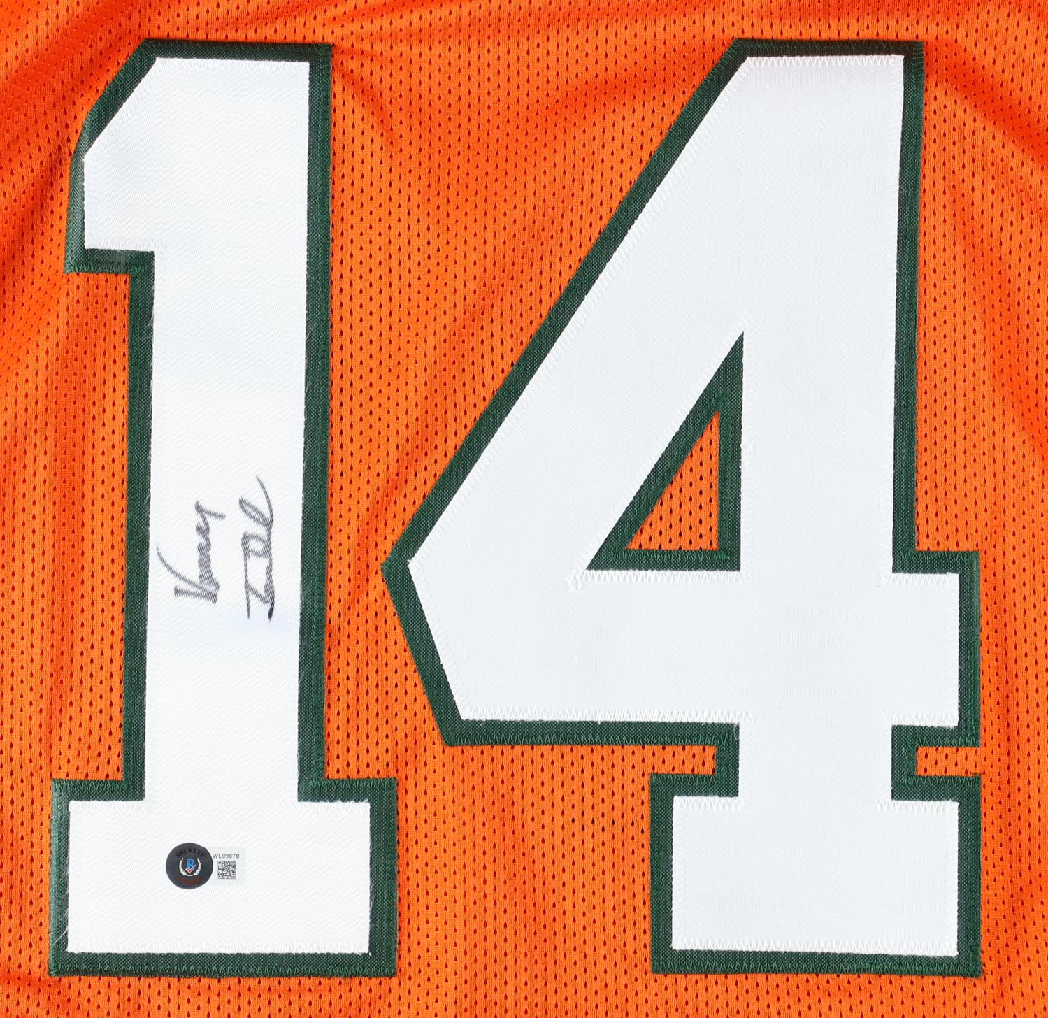 Custom jersey. Everything sewn on, size XL. Hand-signed by Vinny Testaverde.