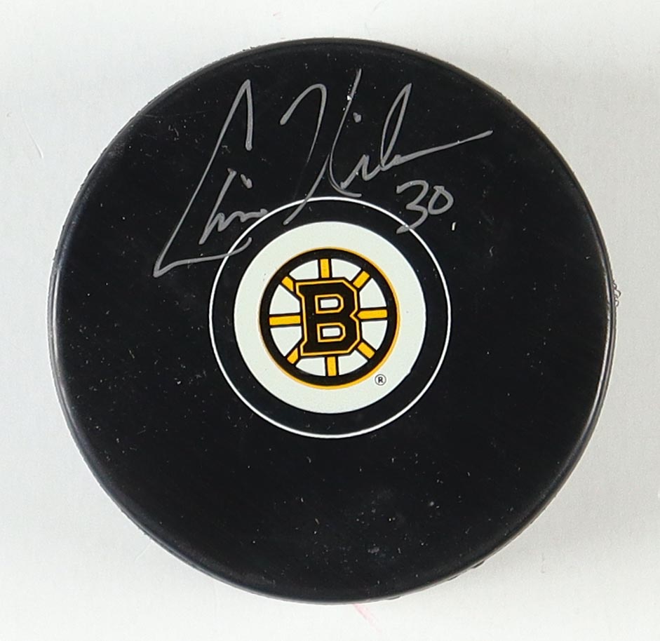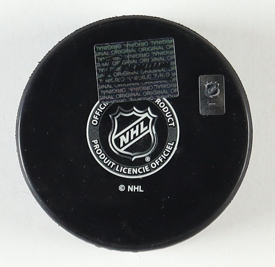 Boston Bruins logo hockey puck has been hand-signed by Chris Nilan.