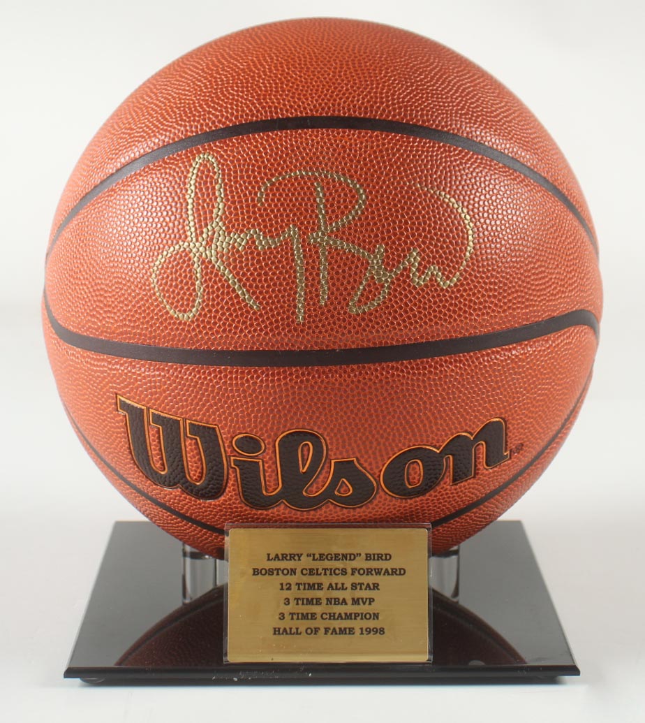 Wilson NBA Forge basketball. Hand-signed by Larry Bird (Boston Celtics, HOF). The display stand is included as shown.