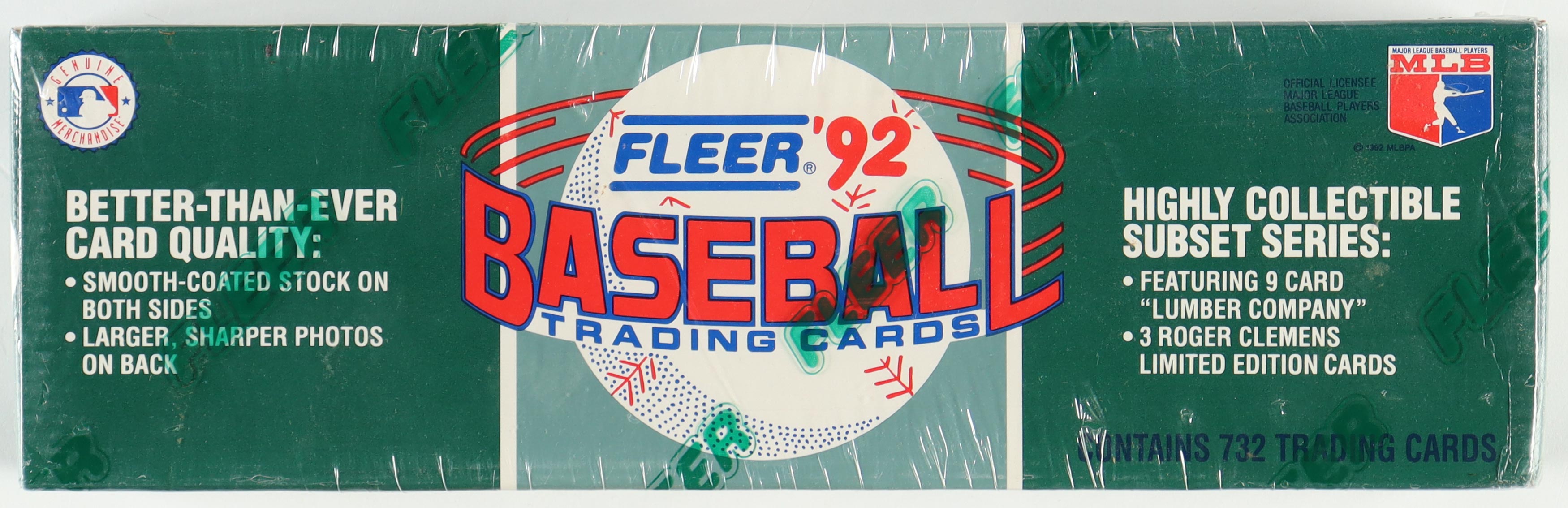 The 1992 Fleer set contains 720 standard-size cards issued in one comprehensive series. The card fronts shade from metallic pale green to white as one moves down the face. The team logo and player's name appear to the right of the picture, running the length of the card. The cards are ordered alphabetically within and according to teams for each league with AL preceding NL. Topical subsets feature Major League Prospects (652-680), Record Setters (681-687), League Leaders (688-697), Super Star Specials (698-707) and Pro Visions (708-713). Rookie Cards include Scott Brosius and Vinny Castilla.