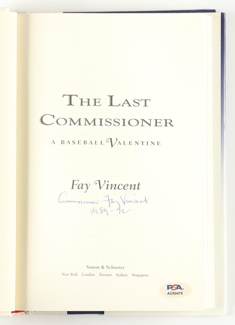 Commissioner Fay Vincent Signed "The Last Commissioner: A Baseball Valentine" Hardcover Book Inscribed "1989-92" (PSA)