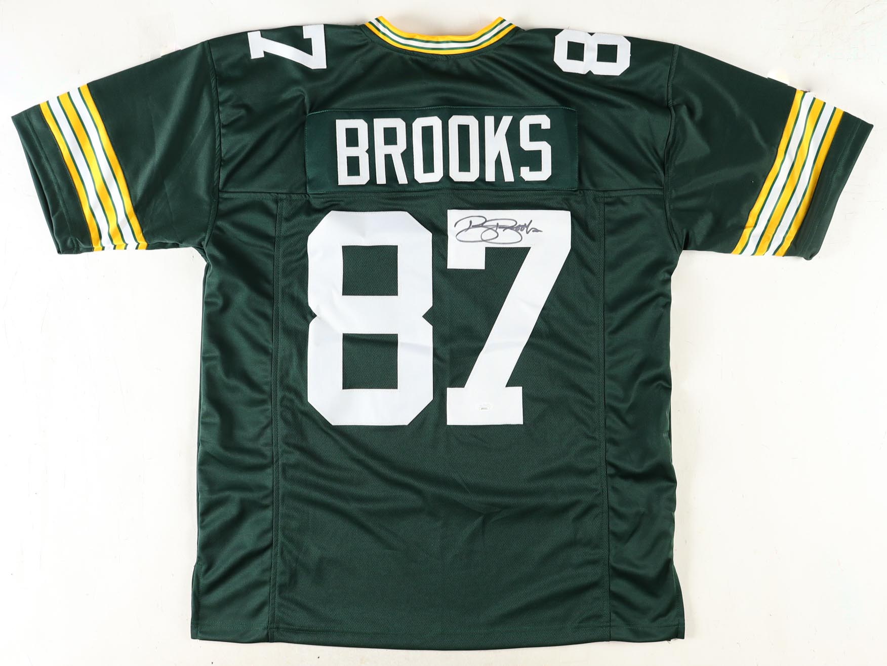 Custom jersey. Everything is sewn on, size XL. Hand-signed by Robert Brooks.
