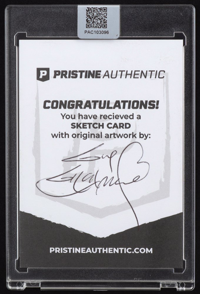 This sketch card includes original art by world-renowned illustrator, Guy Gilchrist.