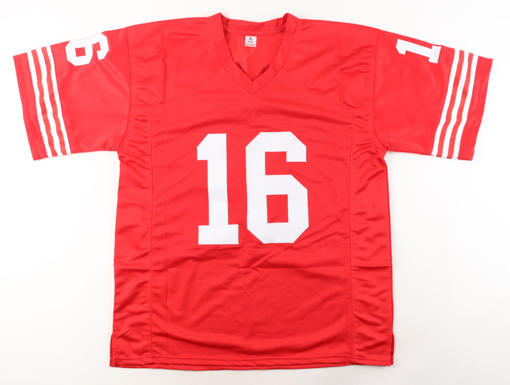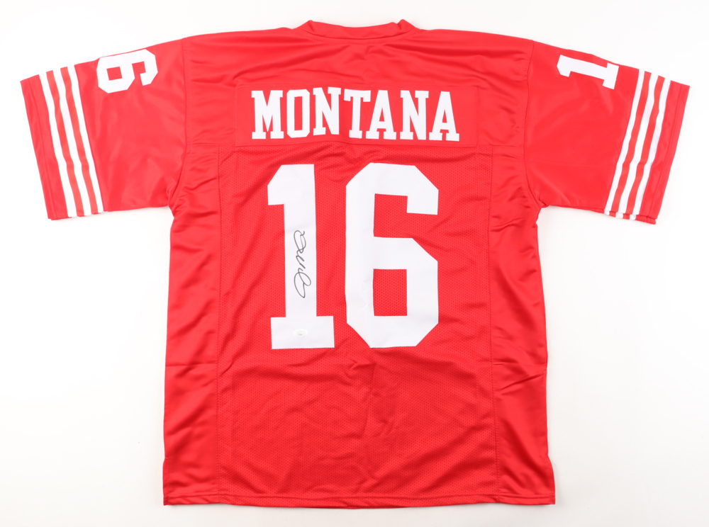 Custom jersey. Everything is sewn on, size XL. Hand-signed by Joe Montana (HOF).