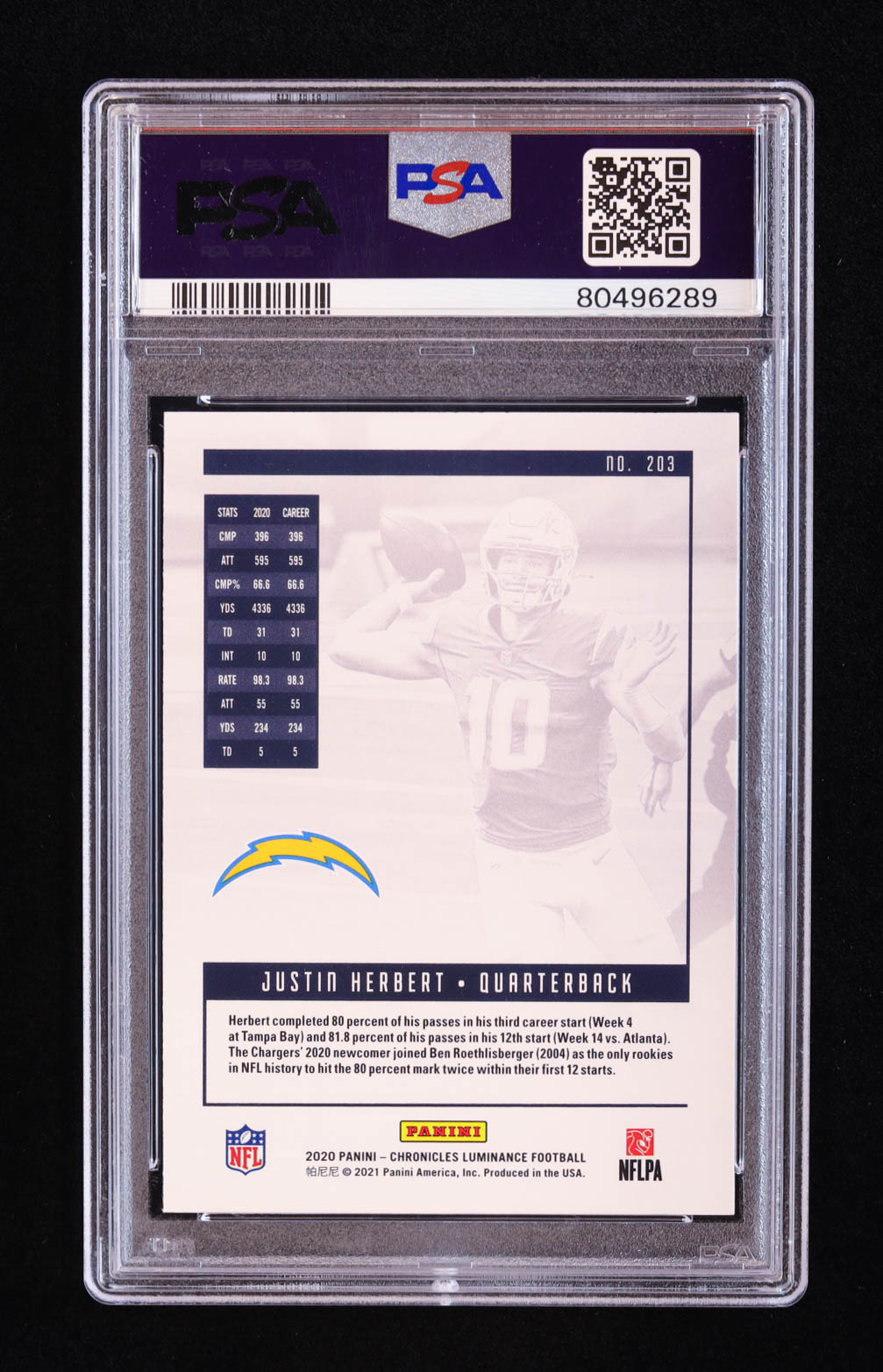 Justin Herbert 2020 Panini Luminance #203 RC / CHRONICLES (PSA 10)