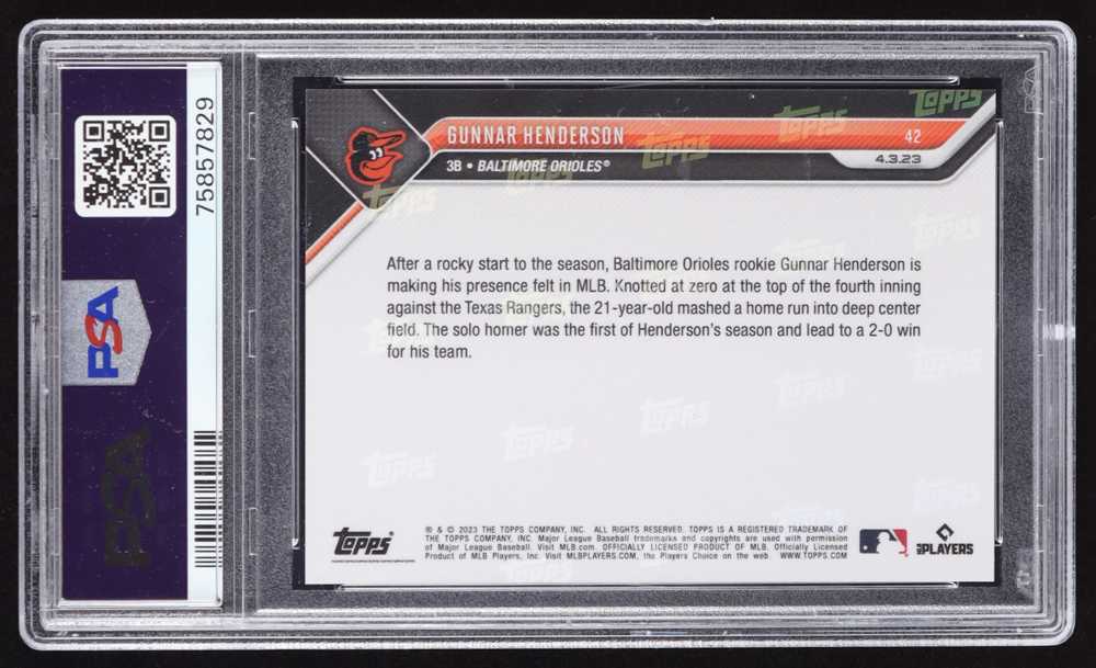 Gunnar Henderson 2023 Topps Now #42 RC (PSA 10)