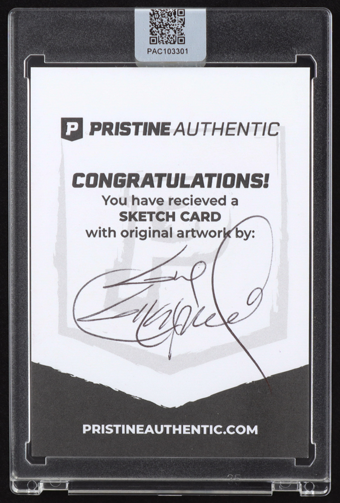 This sketch card includes original art by world-renowned illustrator, Guy Gilchrist.