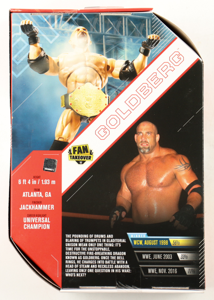 Action figure measures approximately 7" in height and has been hand-signed on the original packaging by Bill Goldberg (HOF). Please note, there is slight edge and corner wear as well as some scuffing on the original packaging.