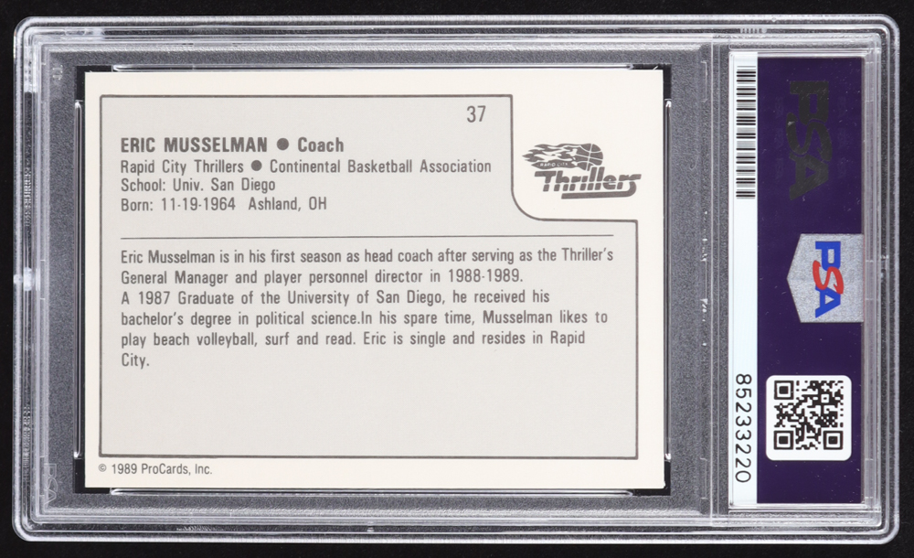 Eric Musselman Signed 1989 ProCards #37 (PSA)