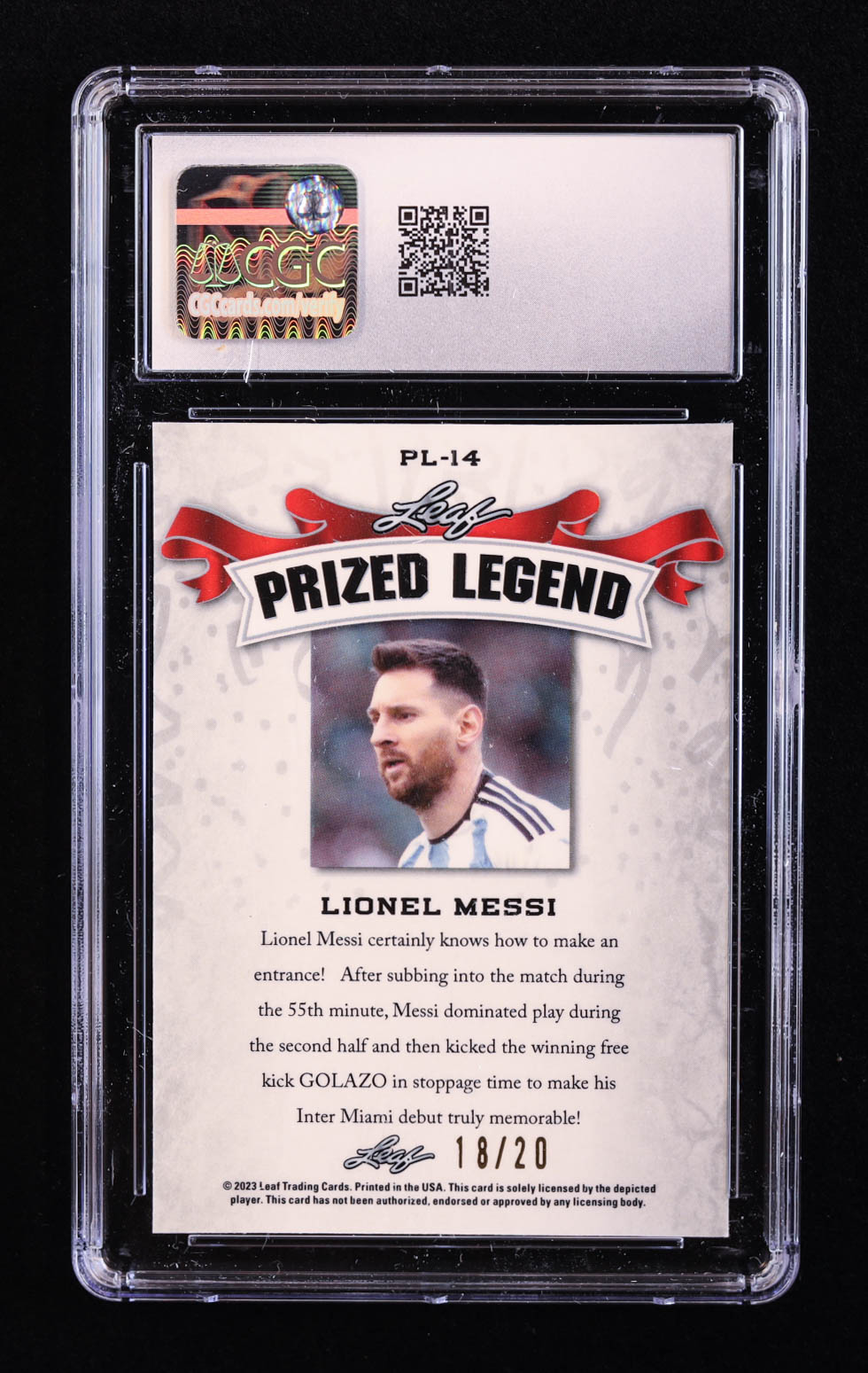 Lionel Messi 2023 Leaf Metal Special Release Prized Legend Mojo Blue #PL14 #18/20 (CGC 10)
