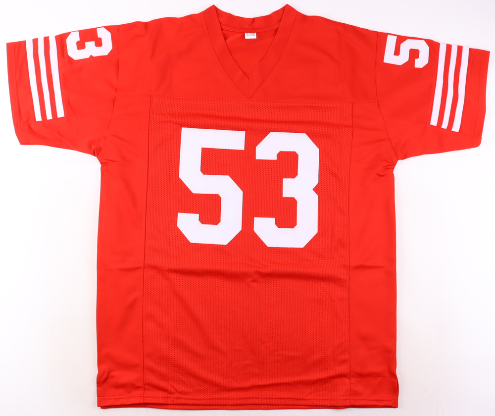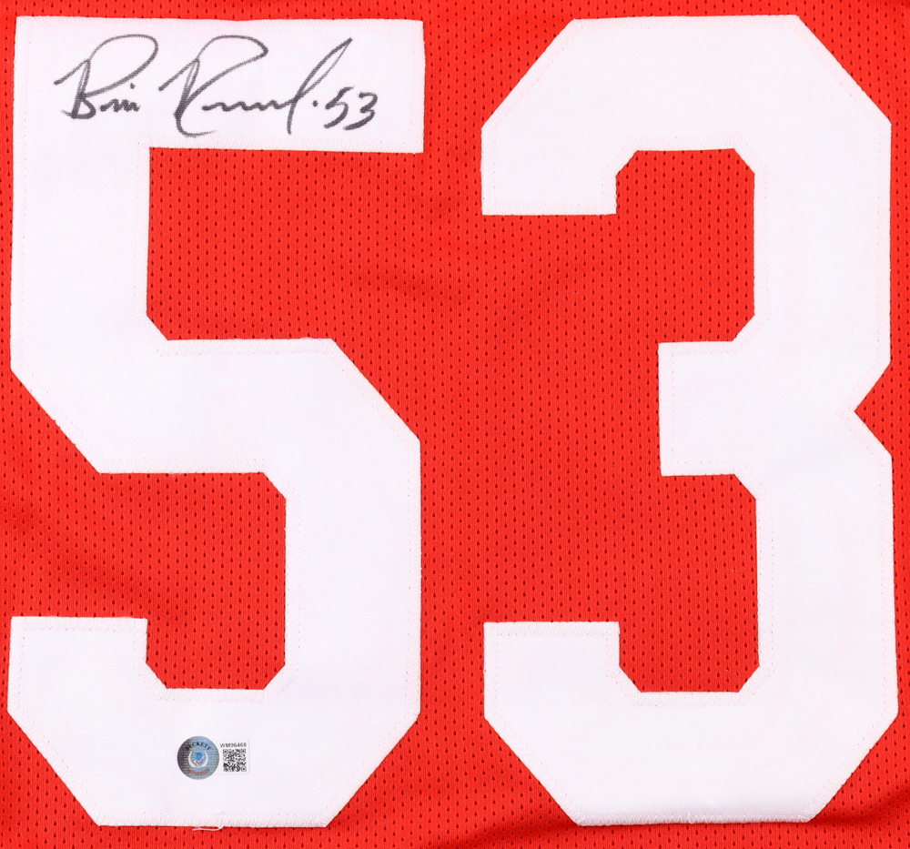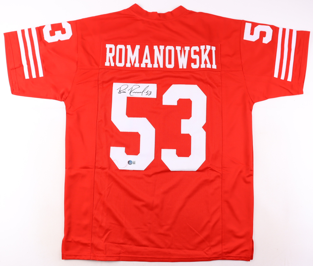 Custom football jersey. Everything sewn on, size XL. Hand-signed by Bill Romanowski.
