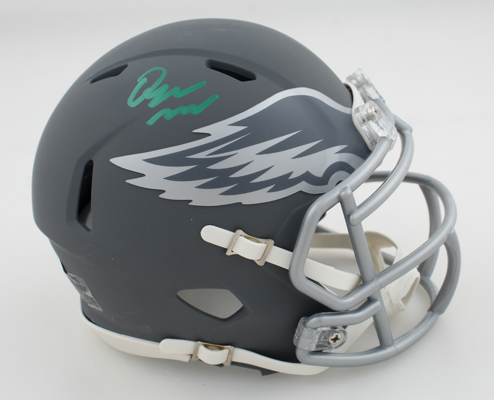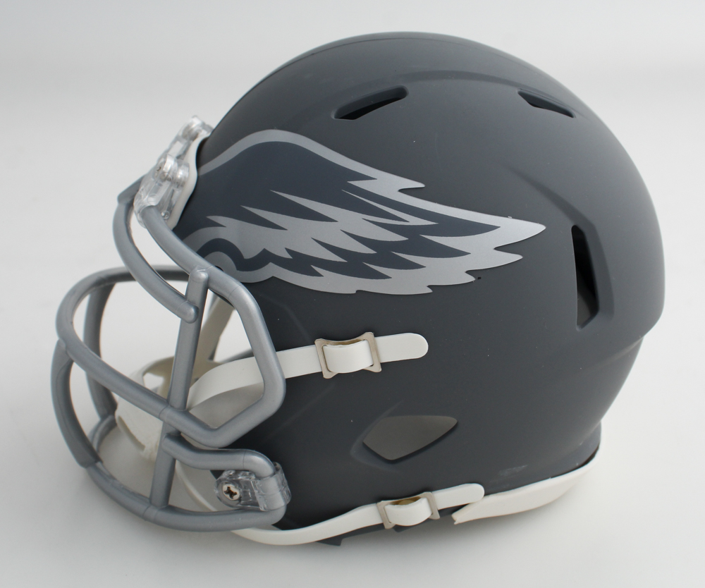 Riddell Philadelphia Eagles Slate Alternate Speed mini helmet. Hand-signed by Quinyon Mitchell.