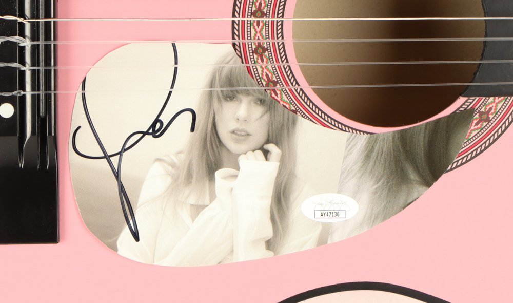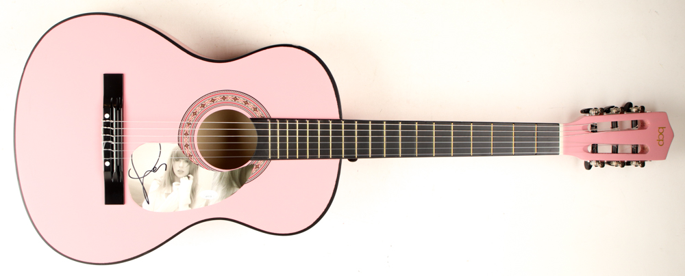 Acoustic guitar measures approximately 39" long and has been hand-signed on the pick guard by Taylor Swift.