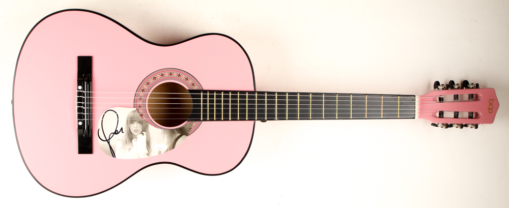 Acoustic guitar measures approximately 39" long and has been hand-signed on the pick guard by Taylor Swift.