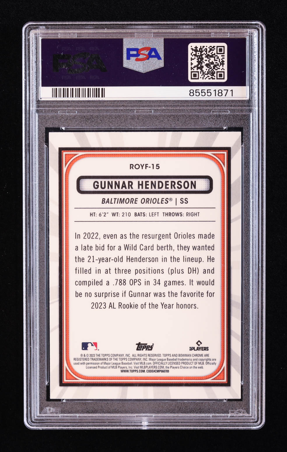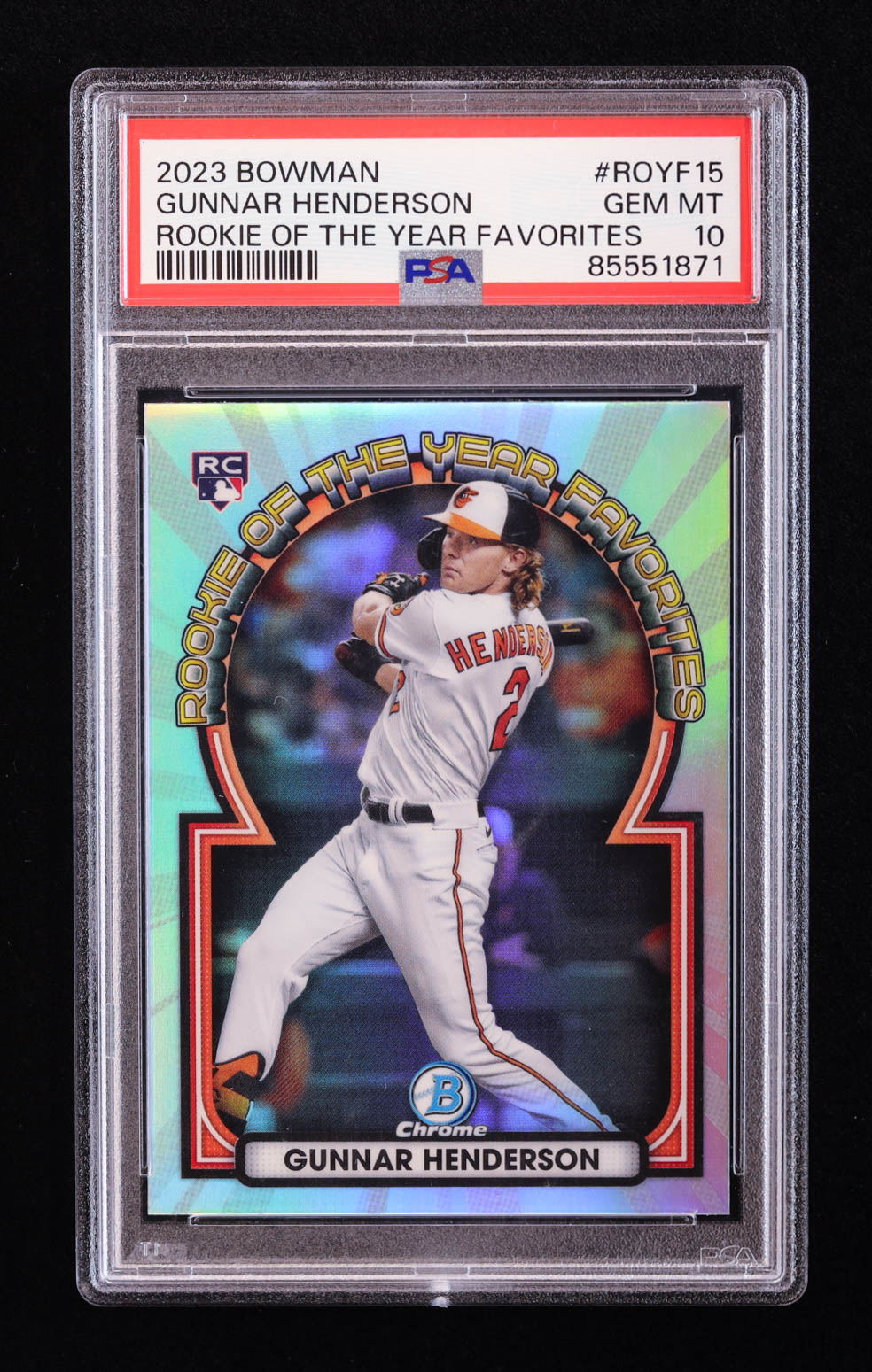 Gunnar Henderson 2023 Bowman Chrome Rookie of the Year Favorites #ROYF15 RC (PSA 10)