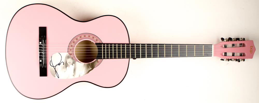 Acoustic guitar measures approximately 39" long and has been hand-signed on the pick guard by Taylor Swift.