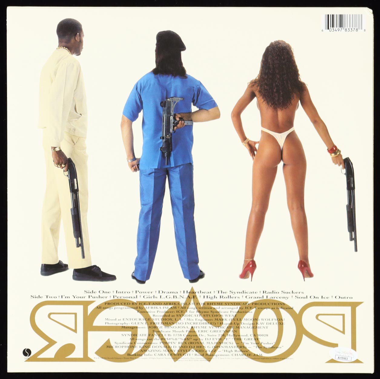 "Power" vinyl record album has been hand-signed on the front cover by Ice T. Record is included as shown.