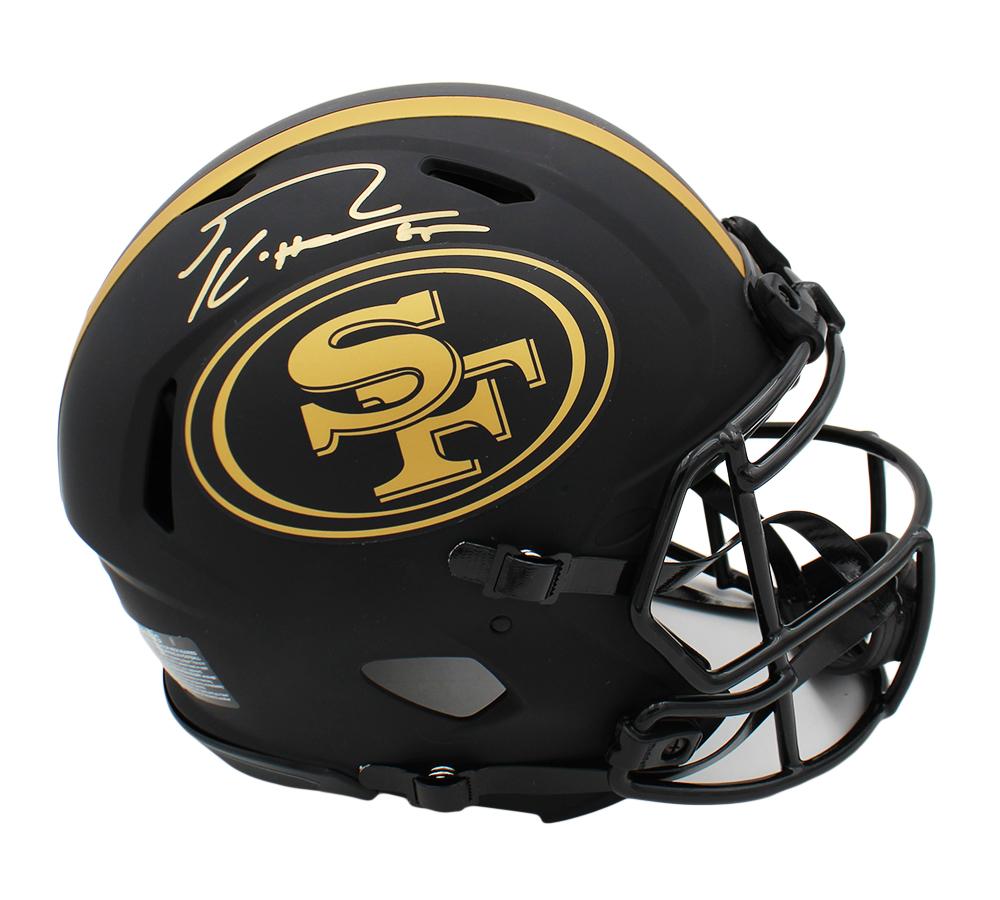 Riddell San Francisco 49ers Full-Size authentic on-field eclipse alternate speed helmet. Hand-signed by George Kittle.