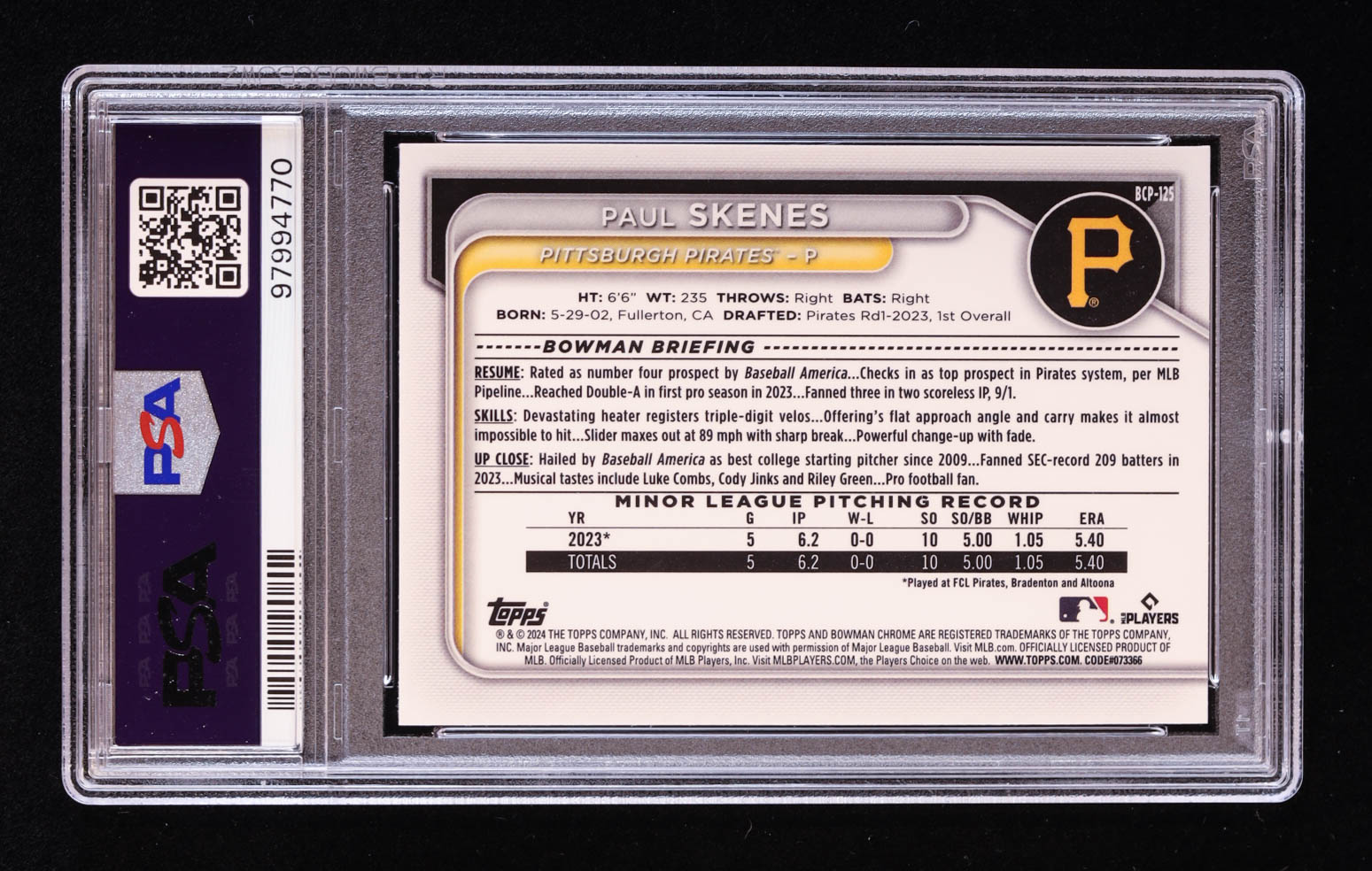 Paul Skenes 2024 Bowman Chrome Mega Box Prospects #BCP125 RC (PSA 10)