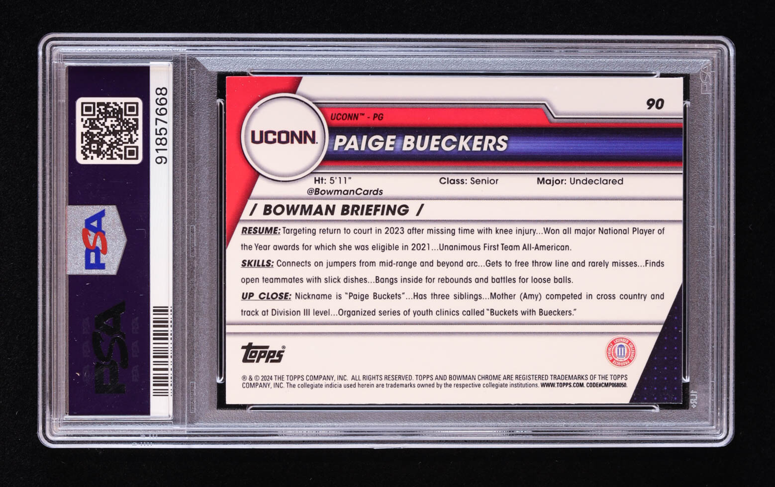 Paige Bueckers 2023-24 Bowman Chrome University #90 RC (PSA 10)