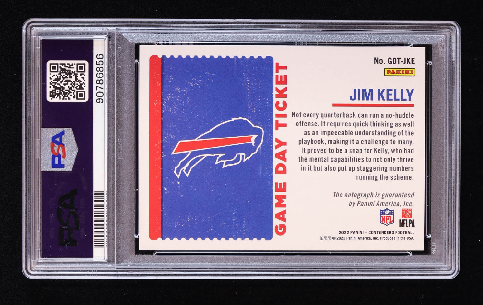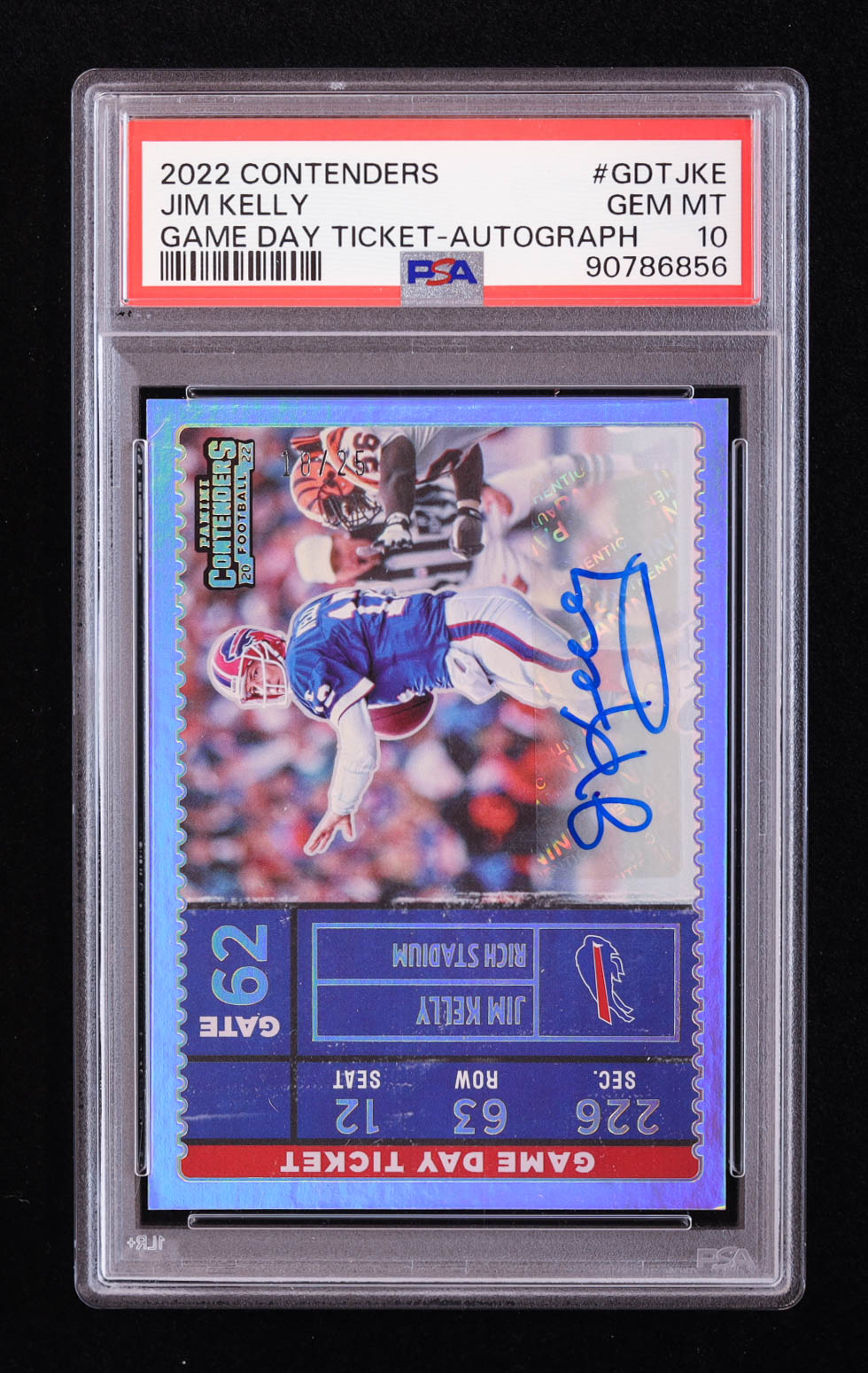 Jim Kelly 2022 Panini Contenders Game Day Ticket Autographs #3 #18/25 (PSA 10)